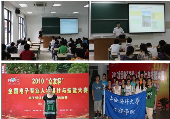 工程实践与科技创新是高等教育发展与国家科技经济发展的需要,我们面向电类专业二、三、四年级本科开设的以实践创新为主的课程“电子设计创新”,目的是培养学生的动手实践能力,提高其综合能力,并注重创新能力的培养,使其符合新世纪对人才的需求。本课程根据学分设置,共1.5个学分,分成3个阶段。通过初级阶段的训练,在初步掌握电路电子电气信息类基本课程的基础上,能熟练解决电子技术为核心的基本电子电路的问题;通过中级阶段的训练,在初步掌握专业基础课程的基础上能综合运用微机原理、单片机等技术设计出具有一定功能的系统,能独立完成方案设计、方案论证,并提出测试和实现的具体方案;通过高级阶段的训练,能掌握本专业技术产品的技术知识,具有一定的创新能力,能够较熟练掌握专业课程,并能熟练综合运用。此外,中心经常和兄弟院校进行交流,邀请相关专家来我校开展各种电子设计创新讲座活动,中心成立后,指导学生参加大学生创新项目5项,获全国电子类大赛2项。
