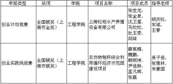 最终,vwin德赢ac米兰官方网选送的由胡庆松教师团队指导的《上海松柏水产养殖设备有限公司》与上海市其他高校选送的共36件作品推送参加“创青春”全国大学生创业计划竞赛,获得银奖。vwin德赢ac米兰官方网选送的由吴子岳教师团队指导的《农作物秸秆综合利用循环经济示范园建设项目》与上海市其他高校选送的共19件作品参加“创青春”全国大学生创业实践挑战赛,最终斩获铜奖。我校取得上海市高校总分排名第九的好成绩。