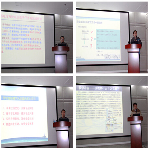 会议第二阶段召开本科教学工作会议,由曹守启老师主持。宋秋红、李军涛、张雅林、刘雨青、姜波、吴燕翔、赵波等七位老师从专业评估整改、专业建设规划、学风建设、课程群建设、教与学六环节、引导学生爱专业、如何上好一堂课等方面做了题为“机制专业评估反映出的问题及其后续建设”、“浅谈物流工程这个专业”、“扎实开展师生交流,稳步推进学风建设”、“引导学生爱上电气专业的路径和抓手?”、“基于质量控制的教与学的探讨”、“电气工程及其自动化专业课程群的设计及实施”、“如何上好一堂课——浅谈专业英语教学”的交流发言,老师们实事求是的现状分析、敏锐和系统的工作思考和接地气的工作建议得到与会老师的一致好评与共鸣;曹守启老师要求各系室利用教研活动,进一步讨论和消化发言材料,把老师们好的意见和建议在实际工作中落实、推进。
