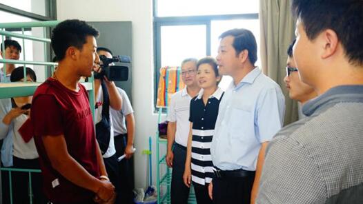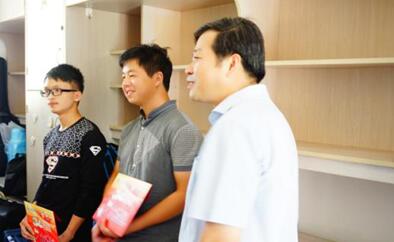 许多新生都是来自比较远的地方,他们作为家庭的希望和荣光,一家老少陪同着来到了学校。面对全新的学习、生活环境,许多新生家长对于自己的孩子能否适应表示担心,吴书记回应道:“学校制度完善、学风淳朴、管理宽松并济,宿舍实行早晚门禁,小区内有专门的阿姨负责,请家长们放心。”听完吴书记的宽慰后,家长大都表示认同和放心。有的新生家长不在寝室,吴书记、王书记等领导细心地询问了同学们的准备情况,并请他们代向家长问好。