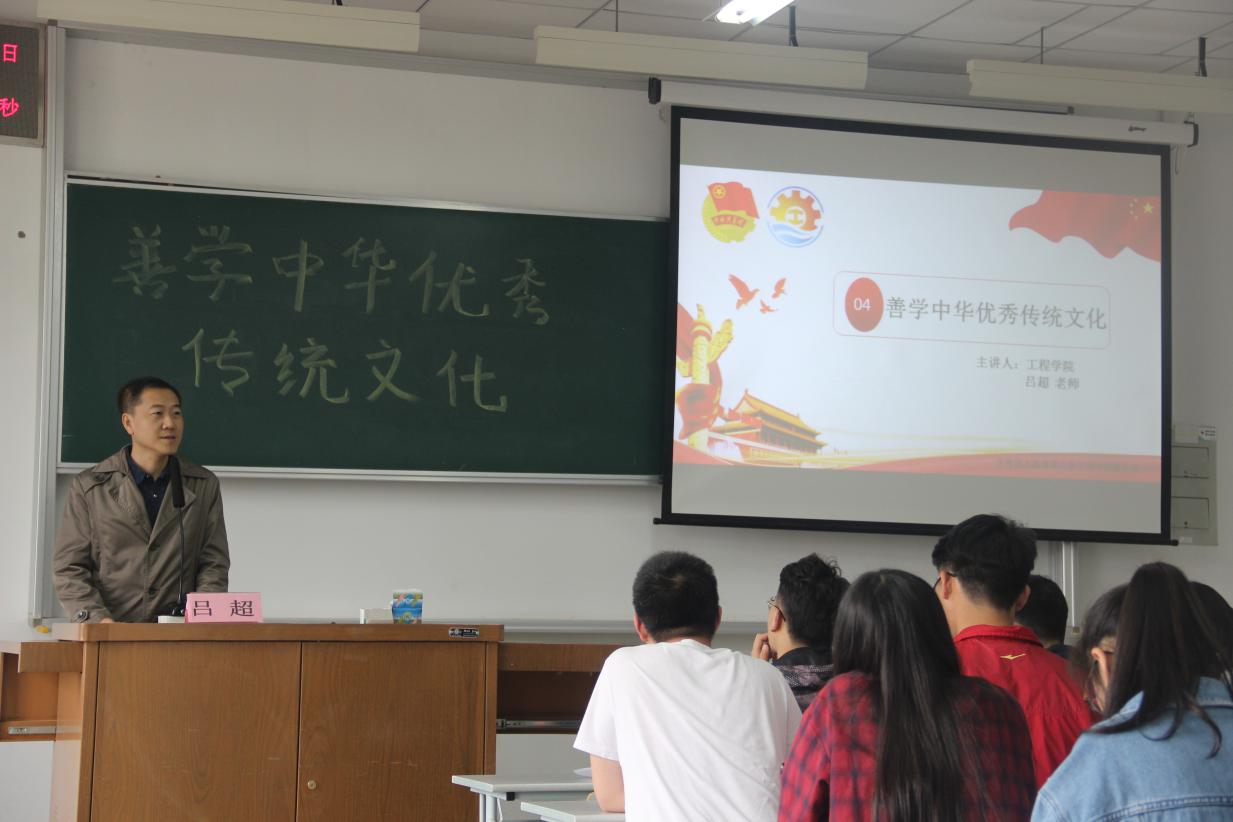 文化是民族血脉、人民精神家园。为进一步贯彻落实全国高校思想政治工作会议精神,推进课程思政建设,引领青年大学生坚定四个自信,传承中华优秀传统文化和践行社会主义核心价值观,2018年4月21日下午13时,vwin德赢ac米兰官方网2017—2018学年春季学期学生骨干培训特邀请到吕超副教授开展 “善学中华优秀传统文化”的讲座。