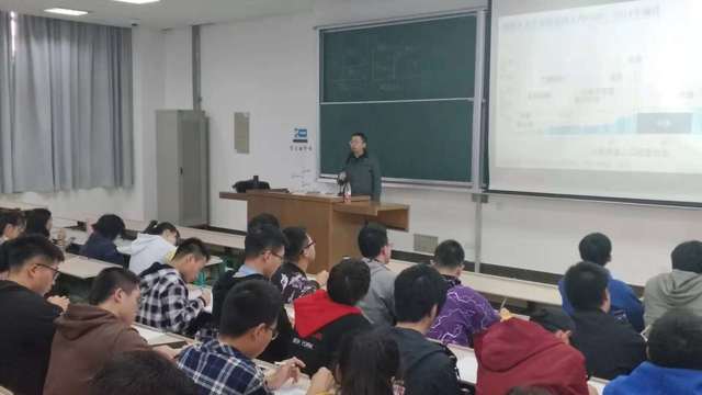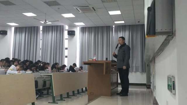 2018年11月20日下午13:00,上海海事大学尹兴老师受邀来我校做“从站起来富起来到强起来——基于社会主要矛盾的演变分析”的专题讲座,vwin德赢ac米兰官方网2017级机制、物工和工业专业同学参与听课学习。