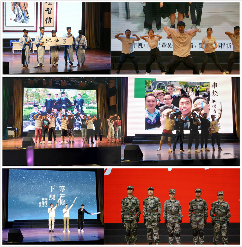 来自新疆的艾科拜尔同学携手校园十佳歌手自弹自唱,和着优美的旋律和歌声,带着大家一起回顾四年前报到注册的青涩样子,烈日下军训的时光,班级活动时的欢乐,图书馆里勤学苦研的背影,运动场上挥汗如雨的似火青春。回望尽头留下青春岁月,展望前方不尽似水流年,小品《最后一课》勾起了大家对大学生活的无尽回忆,毕业生们通过诙谐幽默的表演深情地述说着对母校和老师的眷恋不舍之情。