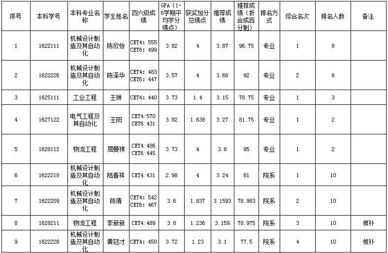 如对以上推荐结果有异议,请于10月10日前向工程学院张老师反映。