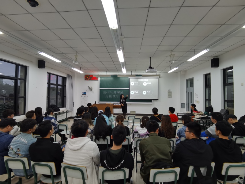11月21日16时30分,学院辅导员姚佳老师为培训班同学带来“团干部心理沟通技能提升”的主题课堂,姚佳老师以亲切互动、趣味小游戏和知识点揭示的形式提升了团干部的心理素质,引导了大家从心理角度和实用性角度思考沟通方法。11月22日15时,团组织干部培训的最后一节课以学生骨干座谈会的形式展开,座谈会由vwin德赢ac米兰官方网党委副书记郑宇钧主持,各团干部依次发言,为学校和学院发展建言献策。郑宇钧老师指出,大家作为学生骨干是学生当中的关键少数,应明确自身定位,发挥自身影响力带动身边同学向上发展。座谈会中,同学们分享了他们各自在班级管理中或班级同学在校园生活中遇到的困难和问题,郑宇钧老师与马骋娜老师一一做出详细回应。