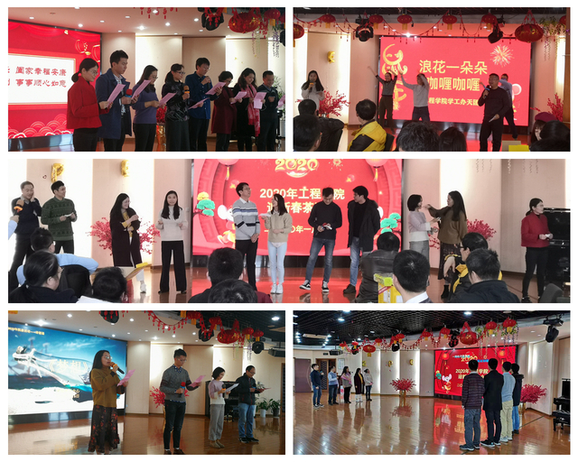 茶话会上各个系室都积极踊跃献上自己的节目,精彩纷呈:有电气工程系的诗朗诵《奔向2020》、实验室诗朗诵《梦想》,有张俊、李光霞、吕春峰、田卡、刘璇各位老师的独唱,也有学工办的歌舞串烧《咖喱咖喱+浪花一朵朵》、行政与实训中心的合唱《我和我的祖国》,还有工业物工系的趣味猜谜语。同时还安排了乒乓健将、谁是歌王、心有灵犀游戏互动环节。现场氛围热烈、气氛融洽。