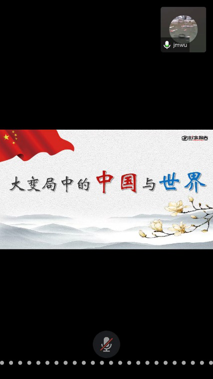 为宣传贯彻党的十九大精神和习近平新时代中国特色社会主义思想,提高学生大局眼光和开阔国际视野,促进学生深刻理解大变局下中国与世界的辩证关系,不断增强学生家国情怀,牢固树立“少年强则国强”的意识。5月26日德赢ac米兰官方合作伙伴党委书记吴嘉敏通过腾讯会议平台为vwin德赢ac米兰官方网学生作主题为“大变局中的中国与世界”的专题讲座。