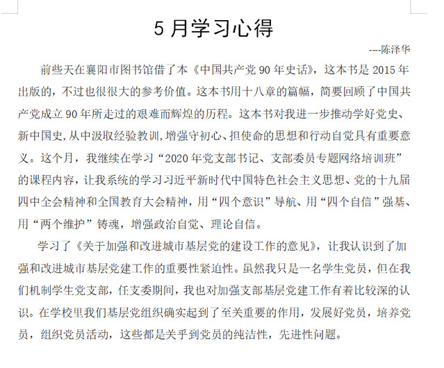 本次主题党日就上级党委要求的“四史”内容进行了学习和交流,党员们表示通过学习历史能够清晰的了解中国共产党成长历程、中国特色社会主义发展过程等,让我们更能够坚定“四个自信”,增强“四个意识”,自觉做到“两个维护”,努力做一名合格的中国共产党党员,为中华民族的伟大复兴做出自己的贡献。