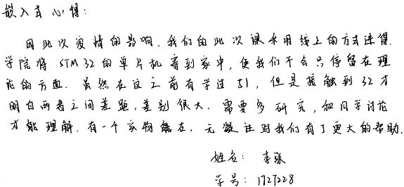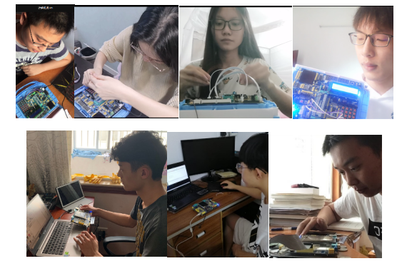 同学们在老师的指导下纷纷在家中建起了微型实验室。通过教材和线上视频自主完成学习,教师进行在线答疑,远程指导实验。同学们在开发板的实操过程中,加深了对基础理论的理解,大大提高了动手能力和实验兴趣,也为疫情中的实践学习增添了一份乐趣。
