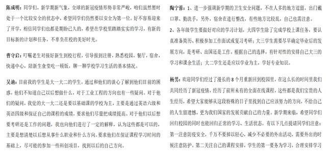 教工党支部党员同志积极投入新学期工作中,带头学习宣传践行学院发布的秋季开学方案和各项部署要求。每位学业导师联系自己学生,从思想、学习、生活等方面了解学生思想动态,并准备一篇“开讲词”回应学生关心的问题,欢迎同学们时隔八个多月重返校园、强调做好自我防护、提醒同学注意安全、勉励同学好好学习。工业物工教研室党支部姜波老师提醒大家:疫情并没有完全解除,所以大家要听从学校的一切安排,做好防护,没有特殊事情尽量不要外出;另外学生宿舍装修出入生活都要注意安全,克服当前困难。第二点就是学习还是大家的基本任务,大家要保证基本不挂科,有补考的争取补考通过。第三点是大家要有自己的目标和定位,有目的的去学习相关课程,参加学生竞赛等,为自己做好积累。最后就是在校园里就好好利用校园资源,每天锻炼身体,身体是一切的基础。