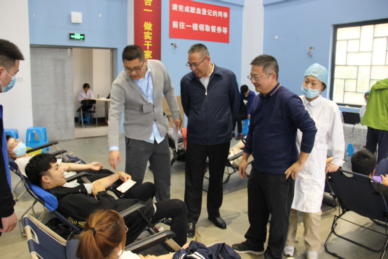 献血区,前来献血的同学们挽起袖管,躺在采血椅上,献出自己的血液,为将来需要血液的人提供他们的一份力量。下午13时30分vwin德赢ac米兰官方网院长曹守启、院党委副书记郑宇钧、辅导员老师主翔宇来到现场,询问志愿者当天的献血情况,后到等候区及献血区慰问献血的同学,赞许他们的奉献精神,同时也告诉同学们要保重身体,多休息多喝水,这些温暖的话语让同学们切实感到了学校的关怀,现场气氛充满温馨。