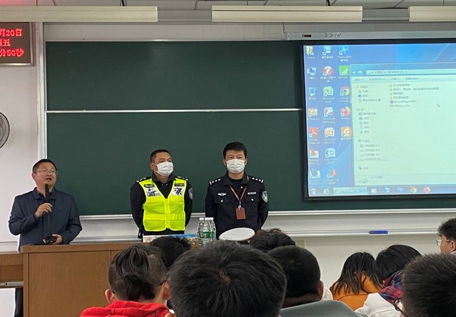11月20日,vwin德赢ac米兰官方网在教学楼1208举办机动车与非机动车的安全培训。出席会议的有临港新片区公安处三大队汪星警官、临港新城派出所朱道付警官、vwin德赢ac米兰官方网党委副书记郑宇钧、保卫处石磊、辅导员主翔宇以及学院拥有机动车和非机动车学生等。