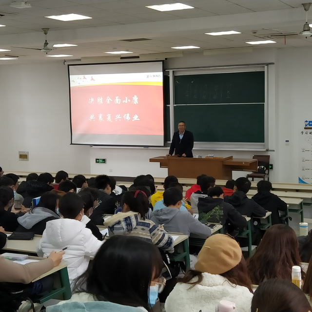 讲座中,曹老师和同学们一起回顾了小康社会提出、建设与建成的全部过程,让同学们更加坚定的认识到我们比历史上任何时候都要自信,建成全面小康必须坚持社会发展为了人民,发展依靠人民,发展成果人民共享。同时,曹老师通过列举我国各区域之间的发展情况实例,体现了我国经济实力和综合国力明显增强。