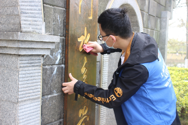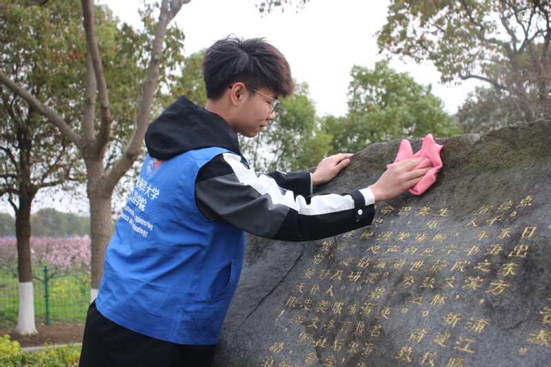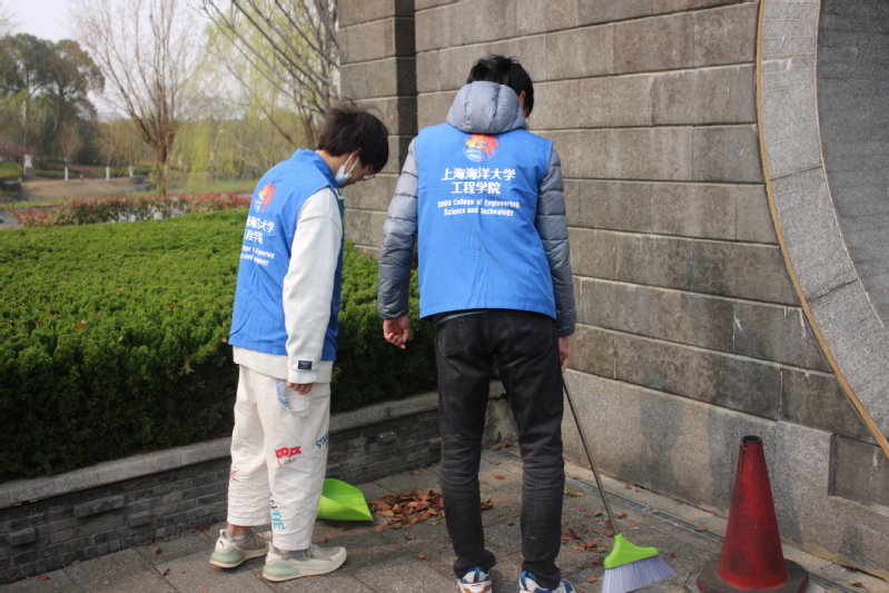 志愿者分为两个批次,其中一部分志愿者负责清扫前四个校牌和附近雕塑,另一部分则负责清扫后三个校牌和周边雕塑,打扫了“江苏省立水产学校”“国立中央大学农学院水产学校”“上海市吴淞水产专科学校”“上海水产学院”“厦门水产学院”“上海水产大学”“德赢ac米兰官方合作伙伴”等七个校牌,以及《饮水思源》、《元鼎骨》等八个雕塑。在志愿者们的辛勤劳动下,朝海路更加干净整洁,更加焕然一新。