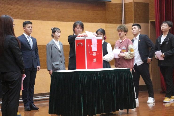 会议首先进行了校级学生代表的选举工作,审议通过监票人和计票人名单,并由在场的计票人员向全场学生代表发放选票,学院学生代表投票。大会最后选举产生12名本科生校级代表。与此同时,为促进学校决策民主化,科学管理化,由2020-2021学年工程学生会主席团成员何泽禹对四份议题进行简要报告。