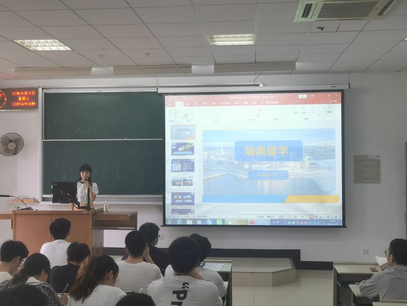 宣讲会伊始,许竞翔副院长对双方学校达成的交流项目进行简要介绍,随后王璐老师以瑞典的地缘位置和风土人情为开篇,拉近了与同学们之间的距离,接着从国家留学便利、签证简便、学校学科优势大、学校发展聚焦未来以及费用低等多方面优势详细介绍了“3+1”双学位项目。她说道当今国际育人模式、新工科专业发展已不满足于传统人才的输送,而是更加注重科研和社会可持续发展融合、敢于打破常规、探索新视野的新型人才,指明了该项目的前瞻性。最后王老师详细讲述了该项目申请流程和所需要求,并表示欢迎大家到瑞典布莱金理工大学学习。