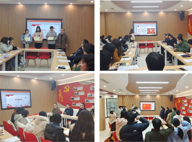 会上全体党员认真学习了党的十九届六中全会精神、新修订的《中华人民共和国教育法》、《中国共产党普通高等学校基层组织工作条例》以及《习近平新时代中国特色社会主义思想进课程教材指南》。表彰了九月和十月学习强国学习最积极的三位同志,与会党员分别汇报联系入党积极分子、预备党员的学习、生活、思想情况。