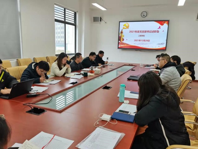 本次述职学院党委采用书面报告与现场汇报相结合的方式进行,现场汇报从2021工作总结、工作中存在的不足与反思以及改进措施三个方面阐述。会议中,各党支部书记围绕党史学习教育、课程思政、就业育人等方面进行了全方位汇报。工程基础教研室党支部书记张俊表示要不断探索创新组织生活开展方式,将政治理论学习、学术报告、系室业务工作、课程思政、三全育人、社会实践教育活动相互融合,充分调动党员积极性,增强支部活动的有效性和多样性。工业物工学生党支部书记主翔宇谈到在建党一百周年来临之际,要采取“引导鼓励,授之以渔”的方法,增加学生党员的相互认知,促进学生党员的全面发展。