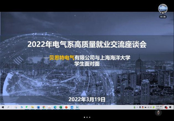 2022年3月19日,vwin德赢ac米兰官方网电气系举办了一次以“电气系高质量就业实习座谈会之贝思特电气有限公司与学生面对面”为主题的线上会议,特别邀请上海贝思特电气有限公司技术五部经理尹东山、招聘主管张叶红参加,vwin德赢ac米兰官方网副院长刘雨青、电气系主任霍海波、党支部书记董兆鹏、电气专业负责人谢嘉等老师,贝思特就业实习的2018、2019级电气学生,及在校19级、20级、21级学生参加会议,会议由董兆鹏主持。