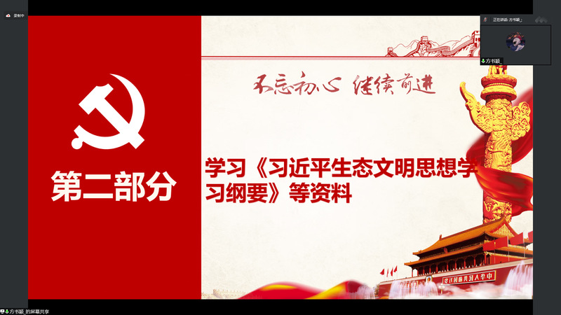 2022年9月19日,工业物工学生党支部全体党员、预备党员在腾讯会议线上开展了工业物工九月党组织生活,会议上认真学习了《知史爱党守初心,砥砺奋进新作为》,学习中央统战工作会议精神,习近平总书记的重要讲话精神,学习《习近平生态文明思想学习纲要》等资料,学习习近平总书记关于师德师风重要论述等内容。会议由支部书记主翔宇主持,vwin德赢ac米兰官方网党委副书记郑宇钧与会观摩。