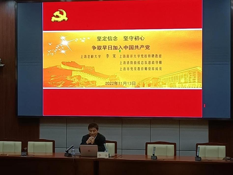 市级机关组工委组织建设指导部李宋带领大家从什么是党,为什么入党,入党的意义三方面着手,他希望大家作为优秀的发展对象,能够坚定自身理想信念,端正作风学风,履行自身职责,践行初心使命,以实际行动,争取早日入党,成为一名光荣的中国共产党员。