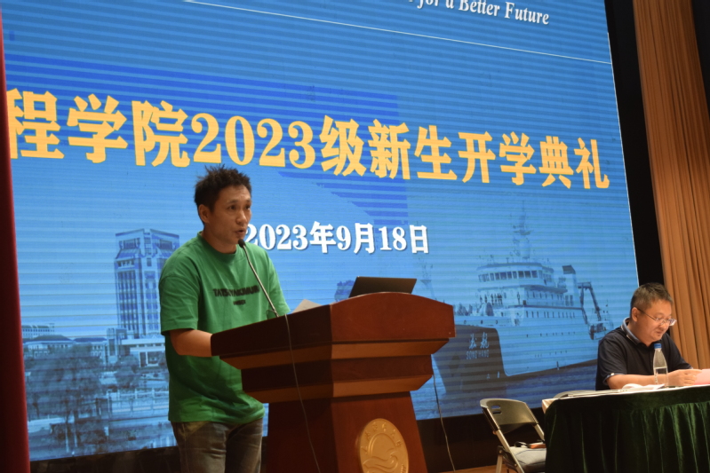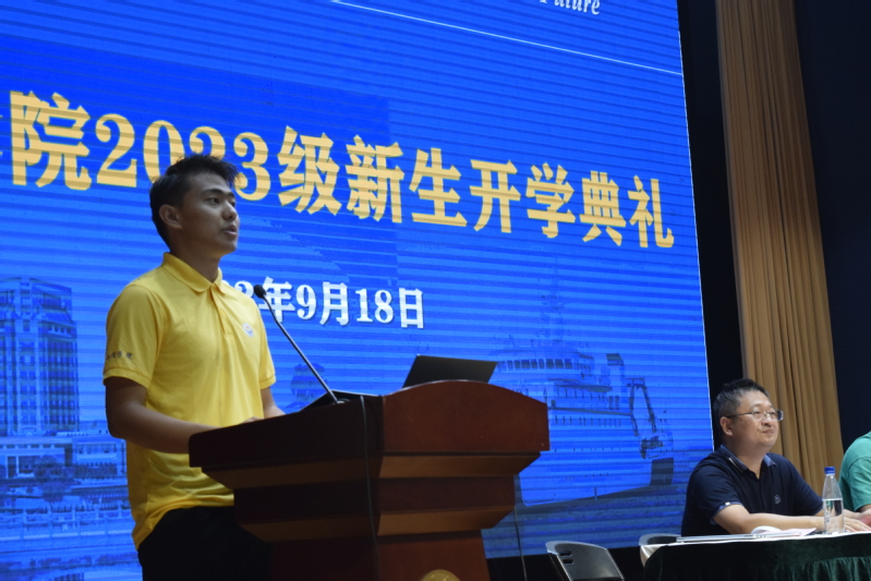 紧接着,2023级机制1班新生代表白毅轩进行了发言,他号召大家要珍惜大学时光,充分利用这个自由开放、无限可能的环境,勇攀科研高峰,焕发青春光彩。校友代表王屹林也从自身经历出发给新生们总结了数条建议。他指出,要以学习为重,用兴趣来指引学习,并以自己的主见辅以正确的价值观对未来进行规划,树立远大的理想和正确的世界观、人生观、价值观,扣好人生的“第一粒扣子”;在此基础上,他鼓励同学们多多参与团学活动,敢于实践,努力把专业所学与国家发展相结合,立大志、明大德、成大才、担大任,努力成为堪当民族复兴重任的时代青年。