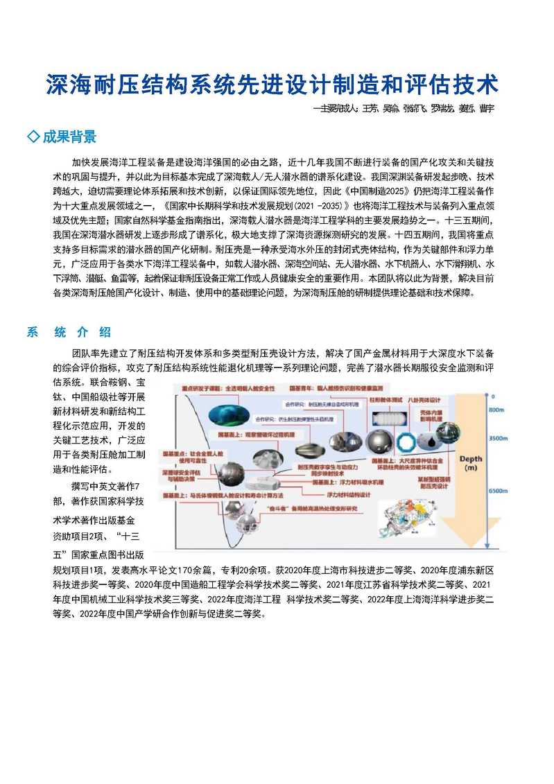 深海耐压结构系统先进设计制造和评估技术