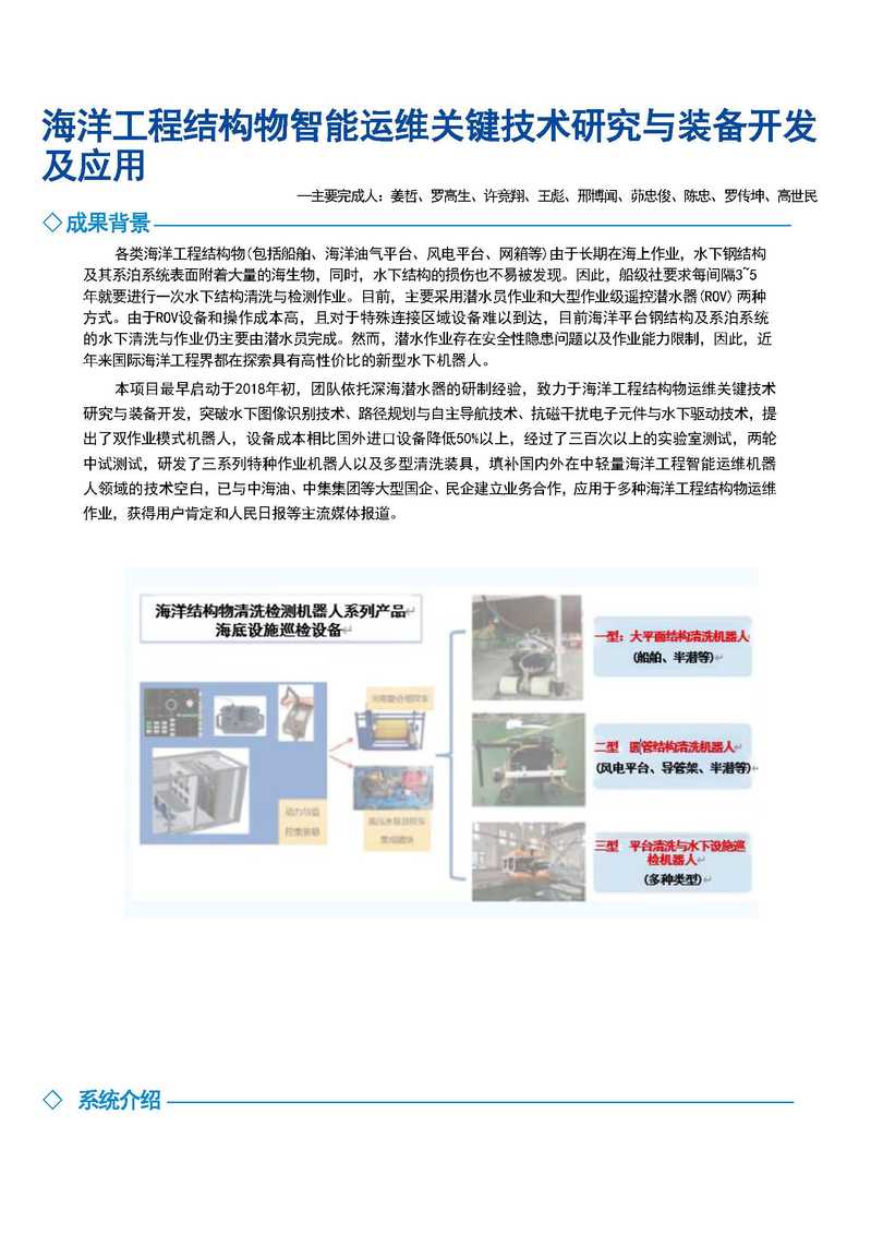 海洋工程结构物智能运维关键技术研究与装备开发及应用