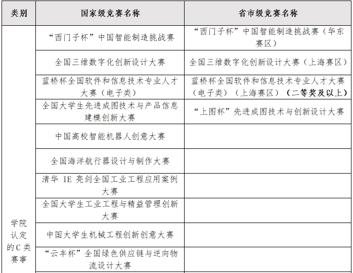 (1)对不在学校认定的A、B类清单中的赛事,由学院每年提前向学生公布赛事清单和加分绩点分配(计前5名,三等奖及以上,加分分值不超过学校认定的B类赛事同级同等次分值),且同一学生所获得的非A、B类赛事加分总值不超过1.2。备注:
