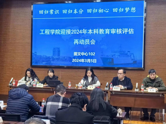 在全面贯彻落实党的二十大精神和党的教育方针的指导下,学校进入迎接本科教育审核评估、加快推进特色鲜明一流大学建设新征程的关键阶段。3月5日下午,vwin德赢ac米兰官方网以“回归常识 回归本分 回归初心 回归梦想”为主题召开了全院大会,暨迎接2024年本科教育审核评估再动员会,全体教职员工出席会议,学院党委书记晏萍主持会议。