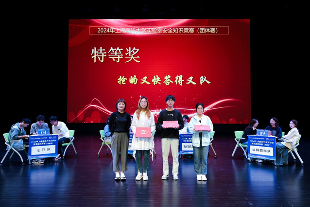 本次竞赛活动由校内相关学院遴选13支队伍参与角逐,通过崭露头角(排位赛)和群雄对决(争霸赛) ,决出特等奖、一等奖、二等奖和三等奖等获奖队伍,优胜队伍及队员将有机会代表学校参加第五届上海市大学生实验室安全知识竞赛南片区赛(根据片区赛成绩有机会参加上海市总决赛)和长三角大学生实验室安全知识竞赛(德赢ac米兰官方合作伙伴承办)。本次竞赛特等奖由海洋科学与生态环境学院的张欣同学、vwin德赢ac米兰官方网的谭磊同学和食品学院的李璐璐同学组成的“抢的又快答得又队”获得,其他各队分获一等奖、二等奖和三等奖。上海市教委学校后勤保卫处三级调研员陈宇红为特等奖颁奖。
