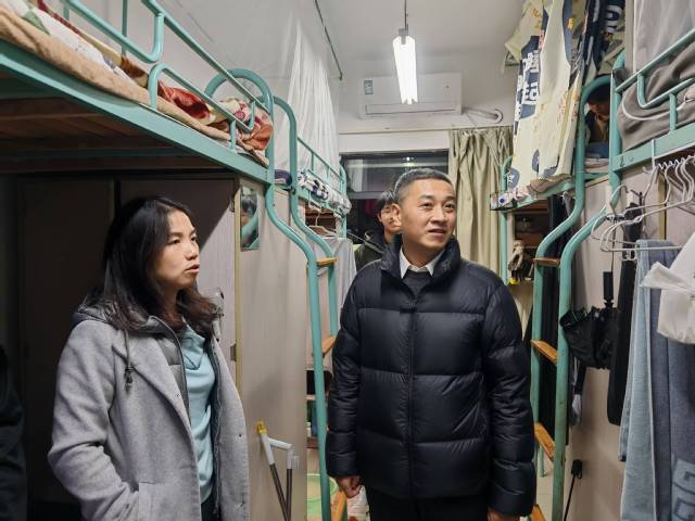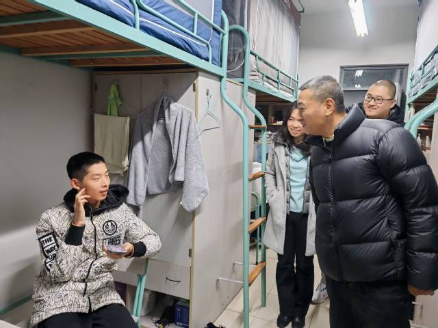 为贯彻落实立德树人根本任务,强化“三全”育人实践,体察校情、关爱学生、答疑解惑、解决问题,推动形成育人合力,12月30日晚,学校党委副书记、纪委书记李洪亮深入学生宿舍走访慰问,vwin德赢ac米兰官方网党委书记晏萍、党委副书记郑宇钧及新生辅导员一行陪同走访。