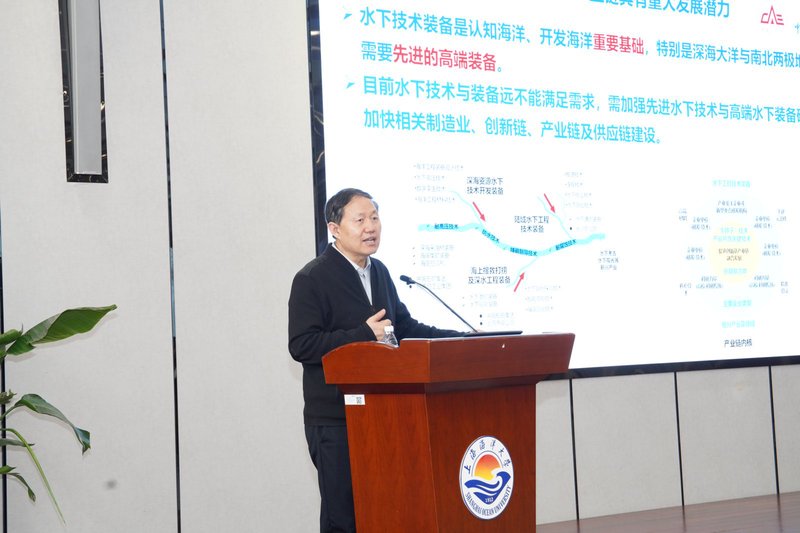 在讲座中,李院士详细分析了当前海洋科技发展的趋势,认为面对食物、能源和资源等全球性需求,以及环境变化带来的挑战,可持续发展应成为核心目标。在此背景下,他提出了海洋科技发展的十大发展趋势。随后,李院士结合实际案例,深入解析了当前新技术、新装备在海洋科技领域的应用,包括海上风机控制系统、水下智能运维机器人、海底电缆挖铺系统等。他特别介绍了世界首套6000米级全场景数字化监控预报系统,为深海采矿提供精准数据支持。他指出,海洋科技的进步涵盖了从空间利用、国防建设到资源开发的全过程,并呼吁进一步加强海洋工程技术、装备和基础设施的研发,以满足未来更高的行业要求。