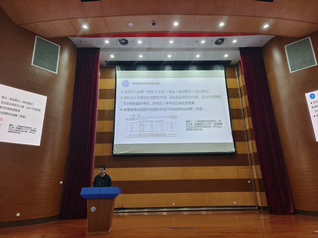 为助力我院学子科学规划考研路径,掌握高效备考方法,4月8日下午,学院于图文104室举办“考研宝典”专场讲座,本次讲座邀请我院青年教师张洪进开讲。